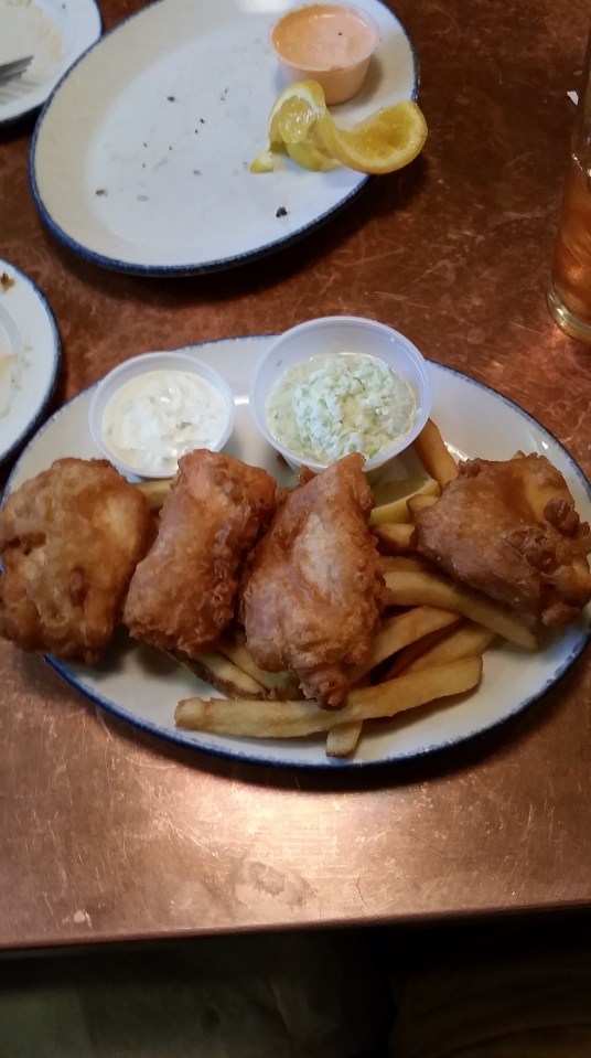 Fish and chips ← Previous Next → Fish and chips! They were delicious and it came with four different kind of fish.