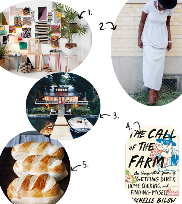 1. Some pretty wall inspiration. 2. Summer night dress pattern. 3. I don’t know where this is, but I want to be there now. 4. Intriguing book to add to my reading list. 5. Cute little french breads.