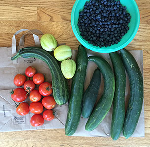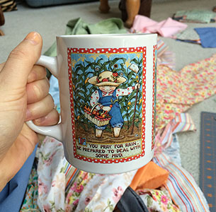 I took a little trip to see my family last month. Besides going to the fair, we spent a lot of time in the garden, checking on the flowers, baking cookies and muffins, and playing with fabric. A nice little summer vacation.