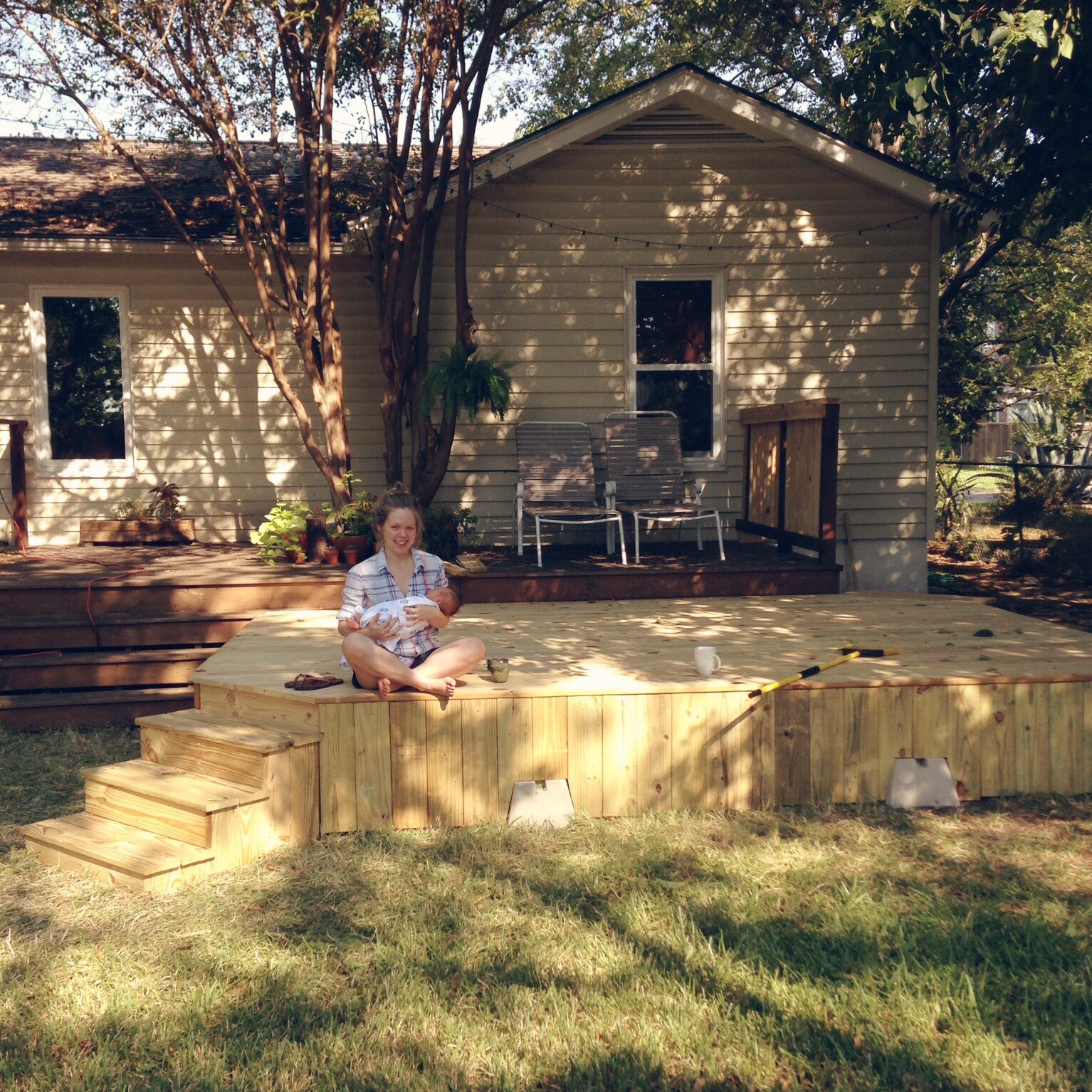 Baby has a little corner in our room, so we didn’t do any big nursery makeover. But after he arrived, we did build a bigger deck! It’s been so nice to enjoy it while we get a little morning sun on our faces. We hope to move the grill up there and get a little table and chairs soon! Can’t wait for a little bit cooler weather!