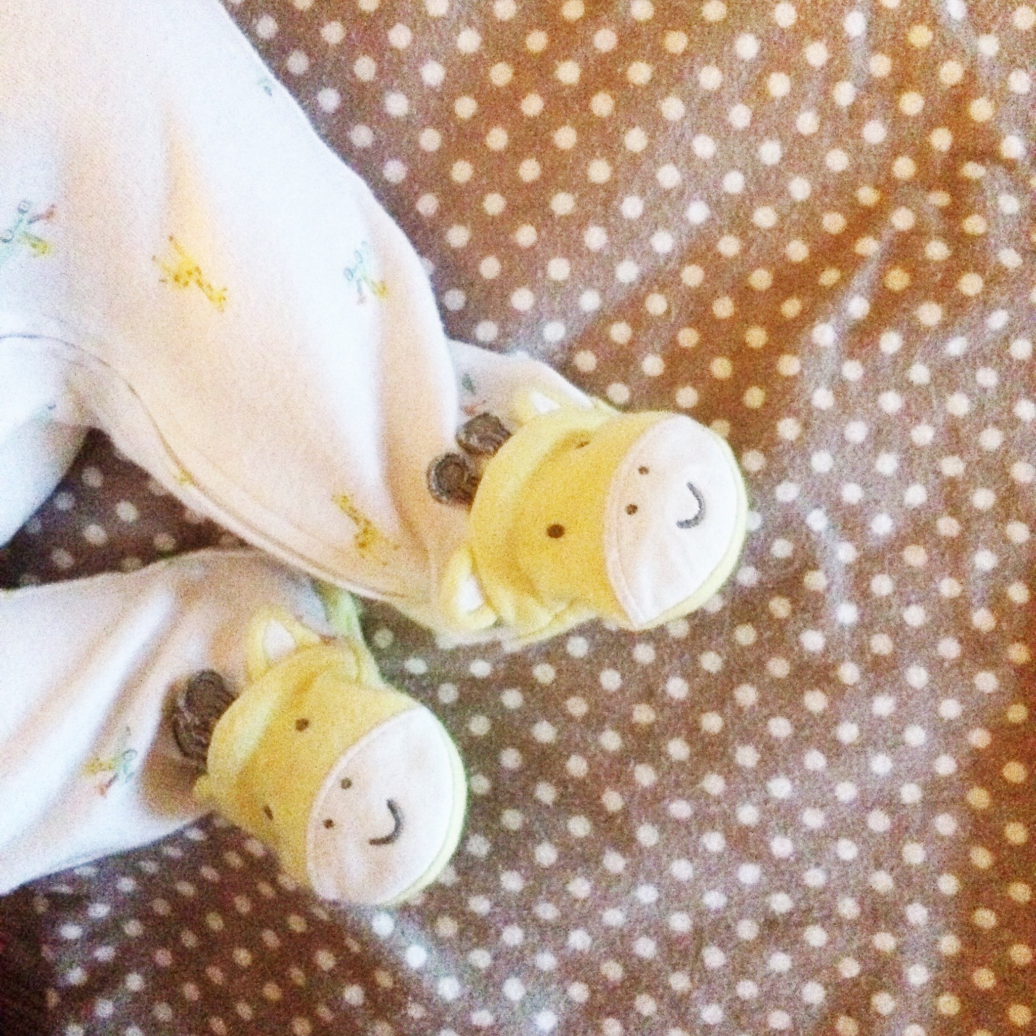 Our little guy LOVES watching us eat. He’ll sit at the table with us and just watch and smile in awe. We started by sharing tiny, mushed up bits of banana with him, and since then, we’ve also tried pears, pumpkin, zucchini, sweet potatoes, and brown rice cereal. A good chunk of it still ends up on his bib, but we think he’s getting the hang of it! We got one of those baby blenders as a gift, so it’s been fun to mix up different things to try!