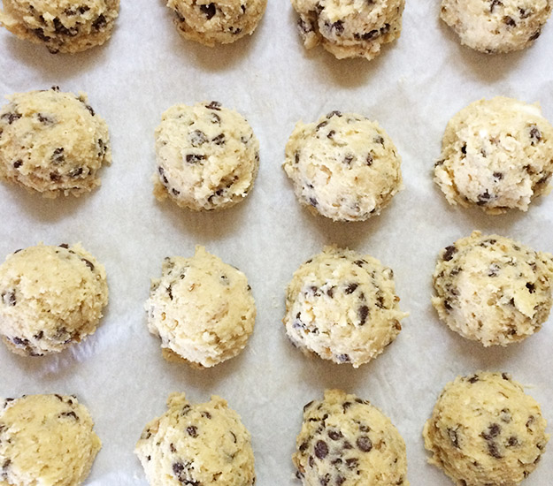 I made some extra cookie dough for the freezer today. I pre-scooped them into cookies so they are ready to go. We sometimes have trouble with frozen cookie dough staying really gooey in the middle, so I tried flattening them a bit, to see if that helps them bake better. We’ll see if it works next time we have a cookie emergency!