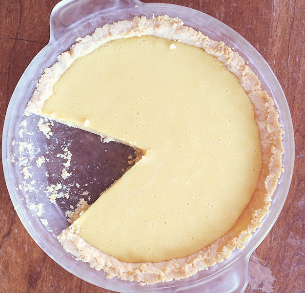 We made a version of this pie recently. We made a cookie crust instead, and used half lemon juice and half lime juice. It was a quick, sweet, bright summer treat. You definitely don’t want to skip the whip cream on top!