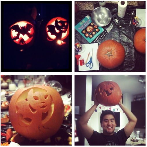 The cat bat pattern is my favorite in the pumpkin carving book. I carved it last year, and the year before, and I’ll probably use it again this year. Because I like it, and its fun to say cat bat.
