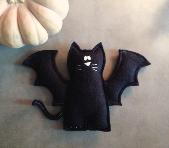 Cat bat is a very simple little creation, so I made up a (very basic) pattern you can find here. Make your own!!! You can add a little face, or fangs, or fancy wing designs. I added a tail to mine. Because he is a cat, who is also a bat. Not the other way around. Possible cat bat configurations are endless.