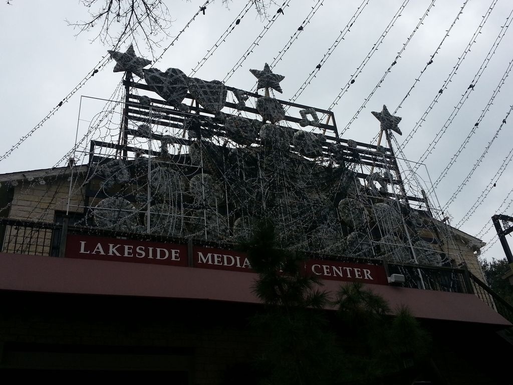 Has anyone else ever noticed that Christmas lights during the day just look like a huge mess but when they are lit up they are beautiful and awesome? My case in point is below from a recent trip to Mozart’s Coffee here in town.