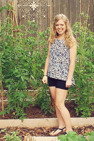 And now, a grainy photo of the shirt being modeled. I ended up taking it in a bit on the sides because it was tooo flowy, but I am real happy with it now. I might add a couple little buttons near the collar too. (Please note the height of the tomato plants. They used to just be babies!)