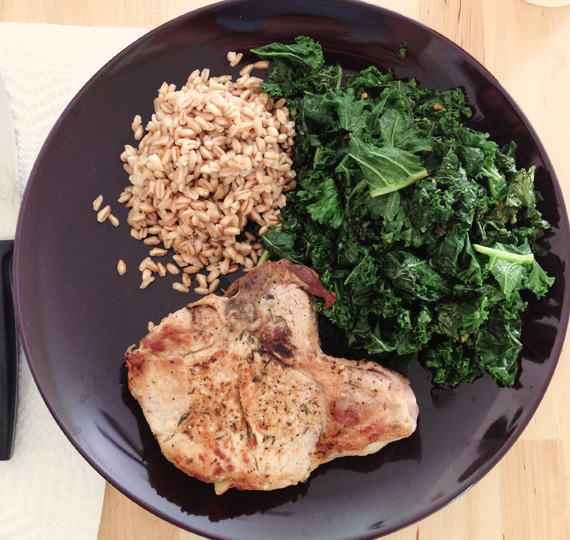 Dinner one- pretty simple. Porkchops, farro, and kale. I have never had farro before, but I really liked it. Also, just learned that farro is a confusing grain.