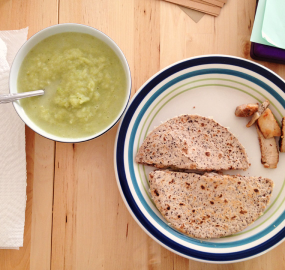 Dinner four- its 100+ degrees outside, but we still made some soup and quesadillas with leftover porkchops. We may have been sweating in the kitchen a bit, but it was worth it.
