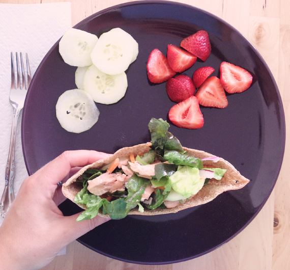 Dinner three- salmon salad pita sandwiches and some berries. This was super yummy, and surprisingly little work. I bet this would be pretty good cold for lunch the next day too.