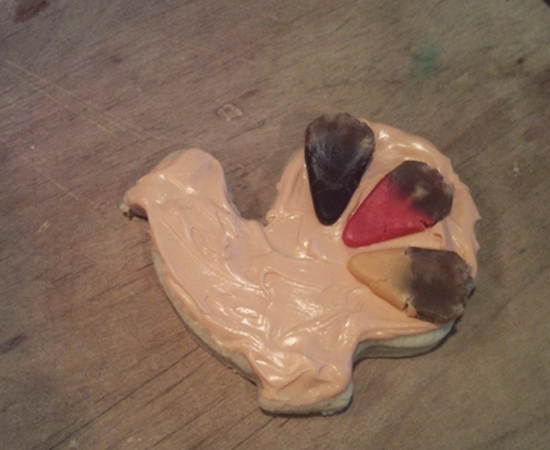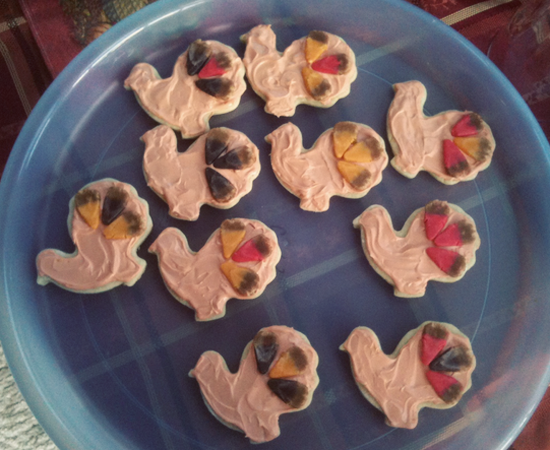 Pre-Thanksgiving preparations at our house include baking cookies. The turkey cookie cutter waits all year for this moment to shine.