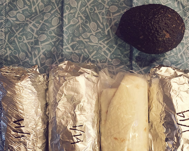 I made some burritos for our freezer, and now I feel like the most prepared person in the world. All ready for lunches. Just add some avocado.