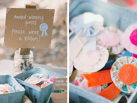 On wedding day, we put them all in berry baskets by the wedding programs. It made me very happy to see everyone wearing them!