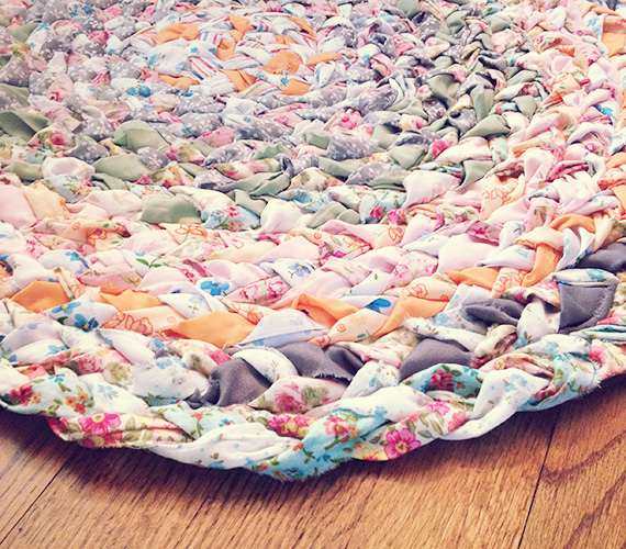 I finished a new braided rug! It is made with fabric we used for wedding decorations. I originally thought we could use it for a new kitchen rug, but once I started putting it together, we decided that it would be perfect for a baby girl room someday. Wouldn’t it?
