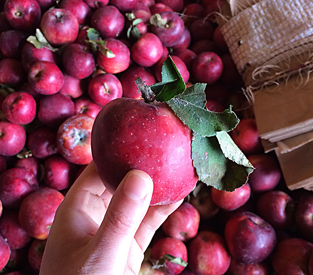 I wish these pictures were scratch and sniff. The apples in the barn at the pumpkin patch. I think I went around to every bin, and took a big whiff of each kind of apple. We took home a big bag of golden delicious to make a pie, and got one apple each to munch on the way home.