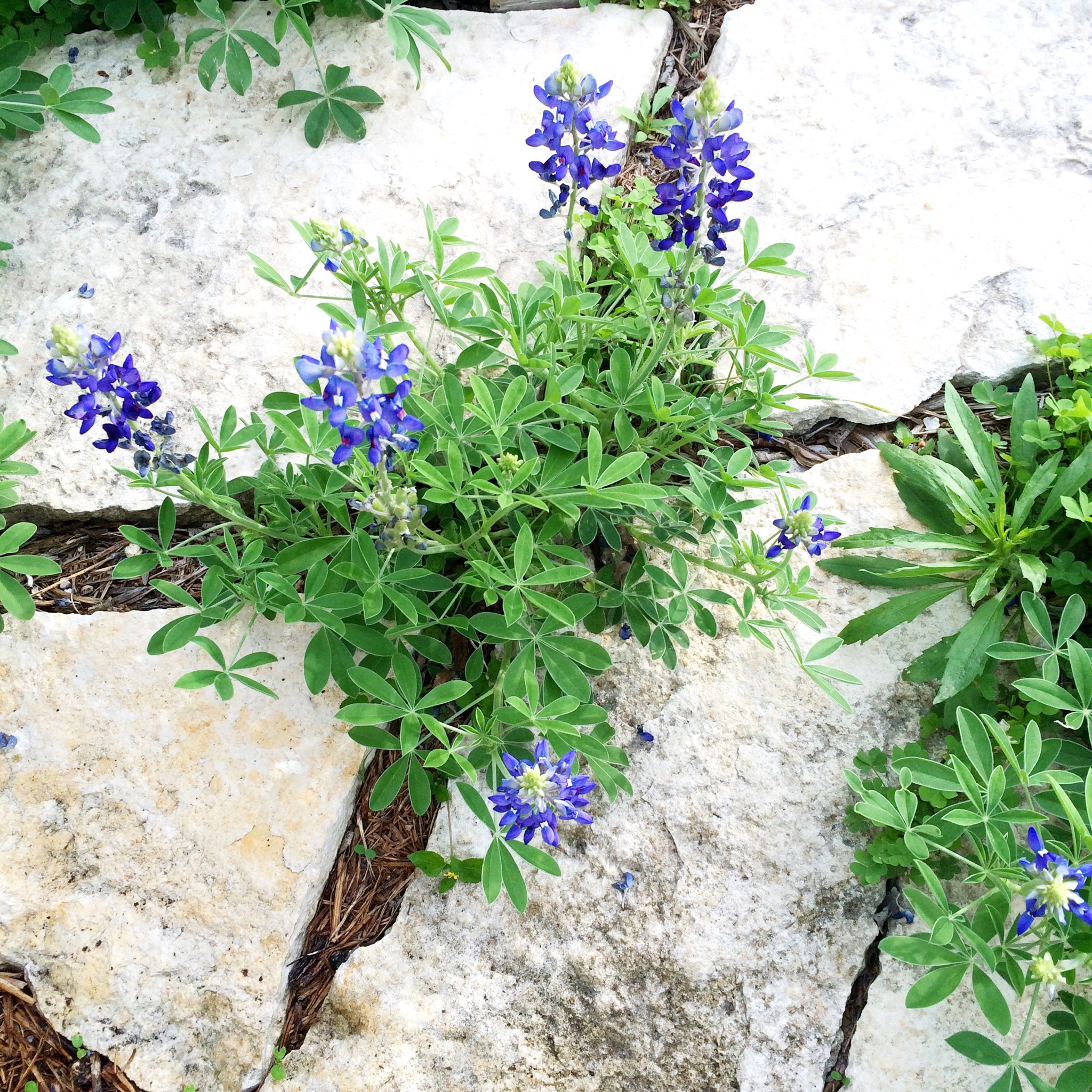 Outside: Our bluebonnets are overtaking the driveway. Growing between rocks and such, and looking all springy.