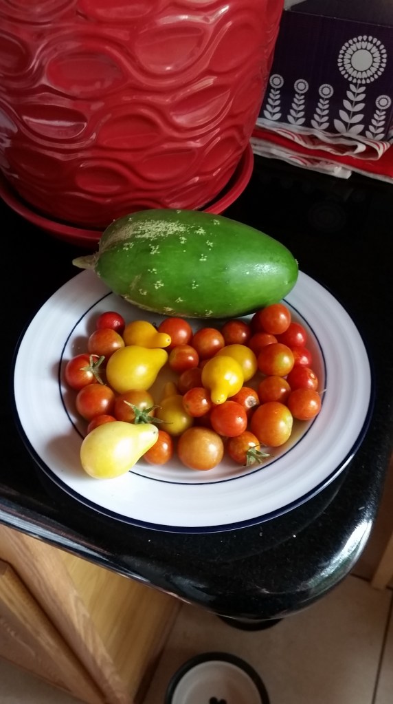 2. Our first spinach harvest! I washed and dried it, and put it into bags of one cup. I am hoping to use it for some smoothies we have been wanting to try. And, we went out to the garden yesterday evening, and picked “all” the cucumbers. But, I found these ones this morning. So we are either blind, or they grew magically overnight.