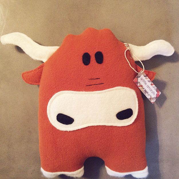 This is a pillow for a little longhorn. One of our friend’s brought over a naked pillow. Her little guy uses it in the car, and it needed a cover. They are big Longhorn fans, so I added a big friendly face to some grey fleece, and sewed a simple pillow cover. Ready for lots of car napping, which I was excellent at when I was little.