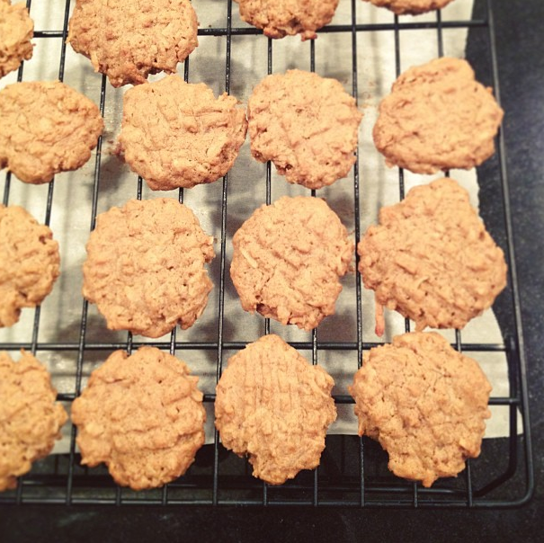 Preheat to 350. Mix almond butter and coconut. Add egg, vanilla, soda, and honey. Scoop to make cookies and place on baking sheet lined with parchment. Don’t forget to flatten a little with the fork! Just like peanut butter cookies. Mine went in the oven for 10 minutes and came out very tender. You could probably bake a minute or two longer for a crunchier cookie. Eat 2 as soon as they are cool, and don’t feel at all guilty about it.